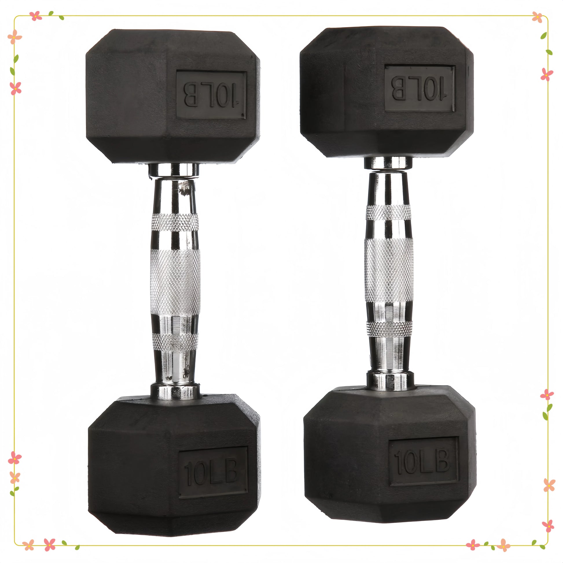 10lb Rubber Encased Hex Dumbbell Pair Black, Non-Roll Design for Home Gym, Strength Training & Weightlifting
